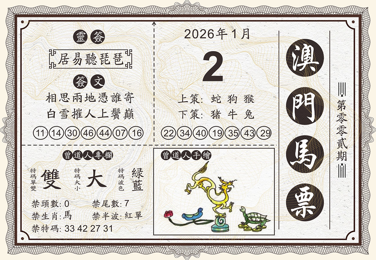 002期:奇人双波【绿波蓝波】开:??准